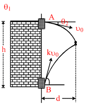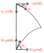 d = v0 cosθ2 t = (kv0 cos θ1) t