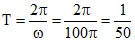 The displacement of a particle executing SHM is given by x = 0.01 sin 100π(t + 0.05). The time period is in seconds and amplitude of the particle is in meters
