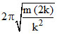 A toy car of mass m is having two similar rubber ribbons attached to it as shown in the figure. The force constant of each rubber ribbon is k and surface is frictionless. The car is displaced from mean position by x cm and released. At the mean position the ribbons are unreformed. Vibration period is