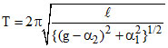 The period of small oscillations of a simple pendulum of length l if its point of suspension O moves a with a constant acceleration α = α1 î − α2 ĵ with respect to earth is