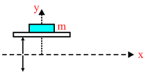 As shown in figure a horizontal platform with a mass m placed on it is executing SHM along y-axis. If the amplitude of oscillation is 2.5 cm, the minimum period of the motion for the mass not to be detached from the platform is :