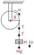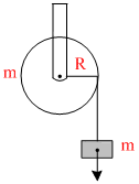 A mass m is supported by a massless string wound around a uniform hollow cylinder of mass m and radius R. If the string does not slip on the cylinder, with what acceleration will the mass fall on release?