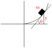 A block of mass m is placed on a surface with a vertical cross-section given by y =