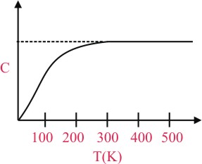 (C) from 400 K to 500 K, Graph of C vs T become asymptotic hence rate of heat absorption become constant
