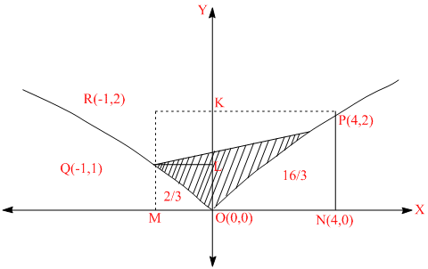 Area = Region(OPK) + Region(QLKR) + Region(OLQ) – Triangle(PQR)