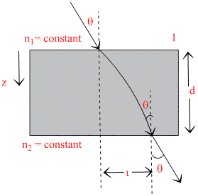 The deviation of ray in the slab will depend on n (z)