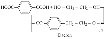 Dacron is polyester formed by condensation polymerisation of terephthalic acid and ethylene glycol.