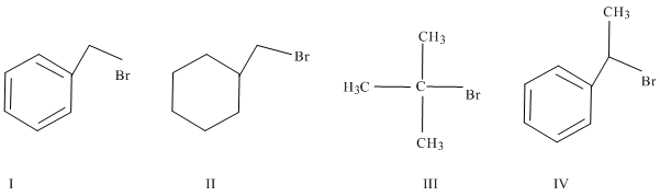 Benzylic and 3o halides both follow SN1 mechanism. Benzylic and 1o halides both follow SN2 mechanism. Benzylic 2o halides can undergo inversion of configuration. The order of reactivity would be IV > I > III if both SN1 and SN2 are considered suitably for substrates