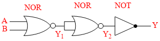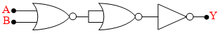 The given circuit indicate which logic gate -...Person A observes B moving in east direction with speed 10 m/s, B observes C moving in south direction with speed 20 m/s...A small block is shot into each of the four tracks as shown below. Each of the tracks rises to the same height. The spee...The figure shows two NAND gates followed by a NOR gate. The system is equivalent to the following logic gate -...Which logic gate is represented by the following combination of logic gates ?...