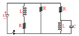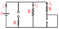 Figure shows a circuit that contains three identical resistors with resistance R = 9.0 each, two identical inductors with inductance = 2.0 mH each, and an ideal battery with emf e = 18 V. The current 'i' through the battery just after the switch closed is,...... :-