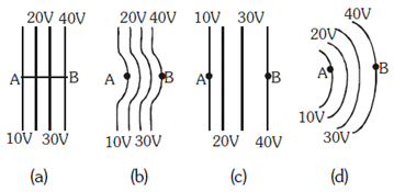 The diagrams below show regions of equipotentials:-