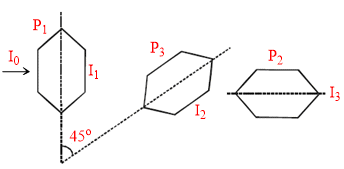 Two Polaroids P1 and P2 are placed with their axis perpendicular to each other. Unpolarised light I0 is incident on P1 . A third polaroid P3 is kept in between P1 and P2 such that its axis makes an angle 45o with that of P1 . The intensity of transmitted light through P2 is :-