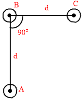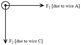 An arrangement of three parallel straight wires placed perpendicular to plane of paper carrying same current 'I along the same direction is shown in fig. Magnitude of force per unit length on the middle wire 'B' is given by :-