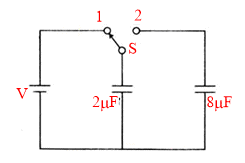 A capacitor of 2F is charged as shown in the diagram. When the switch S is turned to position 2, the percentage of its stored energy dissipated is: