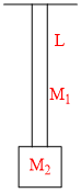 A uniform rope of length L and mass m1, hangs vertically from a rigid support. A block of mass m2 isattached to the free end of the rope. A transverse pulse of wavelength is produced at the lower end ofthe rope. The wavelength of the pulse when it reaches the top of the rope is . The ratio is: