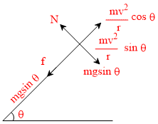 A car is negotiating a curved road of radius R. The road is banked at an angle . The coefficient of friction between the tyres of the car and the road is . The maximum safe velocity on this road is:
