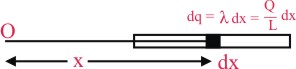A charge Q is uniformly distributed over a long rod AB of length L as shown in the figure. The electric potential at the point O lying at a distance L from the end A is :-