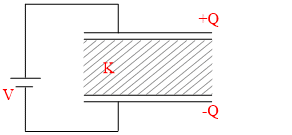 A parallel plate capacitor of capacitance 90 pF is connected to a battery of emf 20V. If a dielectric material of dielectric constant K = is inserted between the plates, the magnitude of the induced charge will be :-