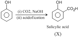 Phenol on treatment with CO2 in the presence of NaOH followed by acidification produces compound X as the major product. X on treatment with (CH3CO)2O in the presence of catalytic amount of H2SO4 produces :