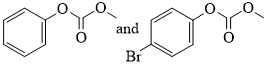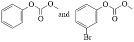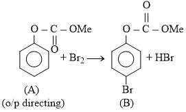 Phenol reacts with methyl chloroformate in the presence of NaOH to form product A. A reacts with Br2 to form product B. A and B are respectively :