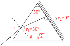 The refractive index of the material of a prism is and the angle of the prism is 30o. One of the two refracting surfaces of the prism is made a mirror inwards , by silver coat ing. A b eam of monochromatic light entering the prism from the other face will retrace its path (after reflection from the silvered surface) if its angle of incidence on the prism is :-