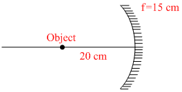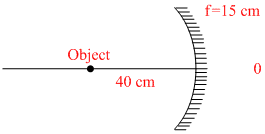 An object is placed at a distance of 40 cm from a concave mirror of focal length 15 cm. If the object is displaced through a distance of 20 cm towards the mirror, the displacement of the image will be:-