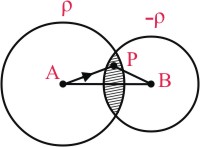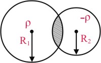 Two non-conducting spheres of radii R1 and R2 and carrying uniform volume charge densities +ρ and -ρ, respectively, are placed such that they partially overlap, as shown in the figure. At all points in the overlapping region :-