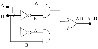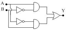In the combination of the following gates the output Y can be written in terms of inputs A and B as :-