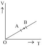 The volume (V) of a monatomic gas varies with its temperature (T), as shown in the graph. The ratio of work done by the gas, to the heat absorbed by it, when it undergoes a change from state A to state B, is :-