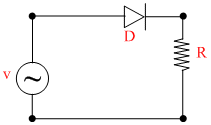 A p-n junction (D) shown in the figure can act as a rectifier. An alternating current source (V) is connected in the circuit.Then: