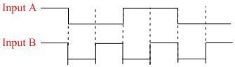 The logic circuit shown below has the input waveforms ′A′ and ′B′ as shown. Pick out the correct output waveform.