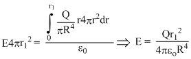 r be the charge density distribution for a solid sphere of radius R and total charge Q. for a point ′p′ inside the sphere at distance r1 from the centre of the sphere, the magnitude of electric field isOptions
