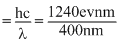= 3.1 eV ⇒ 3.1 eV = Wo + 1.6 eV ∴ Wo = 1.42 eV