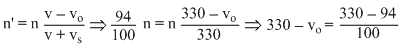 A motor cycle starts from rest and accelerates along a straight path at 2 m/s2. At the starting point of the motor cycle there is a stationary electric siren. How far has the motor cycle gone when the driver hears the frequency of the siren at 94% of its value when the motor cycle was at rest? (speed of sound = 330 ms-1).