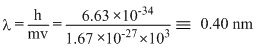 (Mass of proton = 1.67 × 10-27 kg and h = 6.63 × 10-34 js)