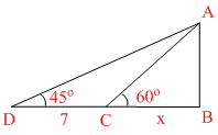 Also AB = x tan 60o = x√3