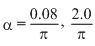 A wave travelling along the x-axis is described by the equation y(x, t) = 0.005 cos (αx - βt). If the wavelength and the time period of the wave are 0.08 m and 2.0 s, respectively, then α and β in appropriate units are