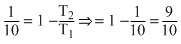 A Carnot engine, having an efficiency of η = 1/10 as heat engine, is used as a refrigerator. If the work done on the system is 10 J, the amount of energy absorbed from the reservoir at lower temperature is