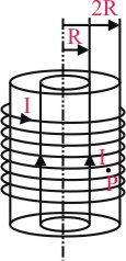 A steady current I flows along an infinitely long hollow cylindrical conductor of radius R. This cylinderis placed coaxially inside an infinite solenoid of radius 2R. The solenoid has n turns per unit length and carries a steady current I. Consider a point P at a distance r from the common axis. The correct statement(s) is (are) :-
