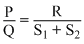 In a Wheatstone′s bridge, there resistances P, Q and R connected in the three arms and the fourth arm is formed by two resistances S1 and S2 connected in parallel. The condition for bridge to be balanced will be