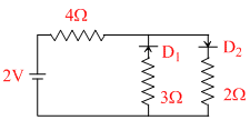 The circuit has two oppositely connect ideal diodes in parallel. What is the current following in the circuit?