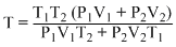 Two thermally insulated vessels 1 and 2 are filled with air at temperatures (T1, T2), volume (V1, V2) and pressure (P1, P2) respectively. If the valve joining two vessels is opened, the temperature inside the vessel at equilibrium will be