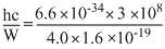 The work function of a substance is 4.0 eV. Then longest wavelength of light that can cause photoelectron emission from this substance approximately