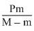 A block of mass M is pulled along a horizontal friction surface by a rope of mass m. If a force P is applied at the free end of the rope, the force exerted by the rope on the block is