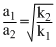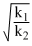 Two particles A and B of equal masses are suspended from two massless springs of spring constants k1 and k2 respectively. If the maximum velocities, during oscillations, are equal, the ratio of amplitudes of A and B is