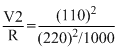 A 220 volt, 1000 watt bulb is connected across a 110 volt mains supply. The power consumed will be