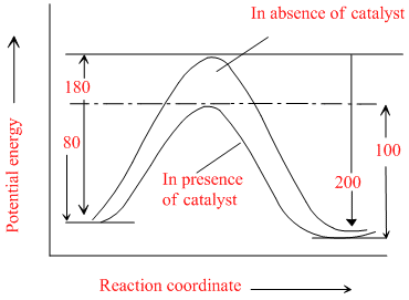 The energies of activation for forward and reverse reactions for A2 + B2 ⇋ 2AB are 180 kJ mol-1 2AB are 180 kJ mol-1 respectively. The presence of catalyst lowers the activation energy of both (forward and reverse) reactions by 100 kJ mol-1. The enthalpy change of the reaction (A2 + B2 → 2AB) in the presence of catalyst will be (in kJ mol-1)