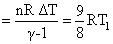 5.6 liter of helium gas at STP is adiabatically compressed to 0.7 lit. Taking the initial temperaure to be T1, the work done in the process is