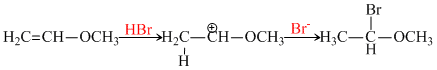 HBr reacts with CH2 = CH - OCH3 under anhydrous conditions at room temperature to give