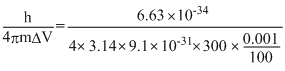 Uncertainty in the position of an electron (mass = 9.1 × 10-31 kg) moving with a velocity 300 ms-1, accurate upto 0.001%, will be